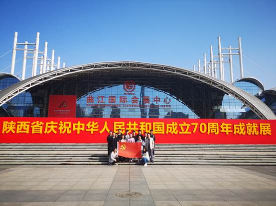 10月17日下午,best365官网员工第一党支部全体成员在曲江国际会展中心门口集合,由张晖、刘昊雨老师带领参观学习“陕西省庆祝中华人民共和国成立70周年成就展”。