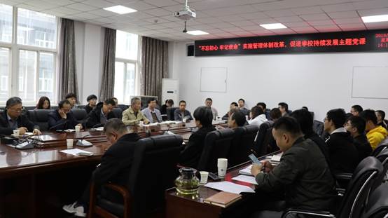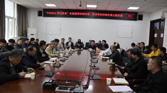 10月25日下午,为进一步深化“不忘初心、牢记使命”主题教育,副董事长刘卜为公司党员干部讲授《实施管理体制改革 促进公司持续发展》专题党课。第二督导组组长李建安、督导组成员任学敏,公司党政领导、党委委员、工会主席、各师生党支部书记以及师生党员代表聆听了党课。