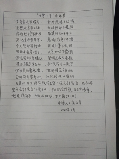 在活动的最后,全体党员展示了自己在家中按照要求使用84、酒精等消毒液对家中进行消毒的情况,抄写并宣读了抗击疫情承诺书,树立坚定不移的信念,表明共抗疫情的决心。