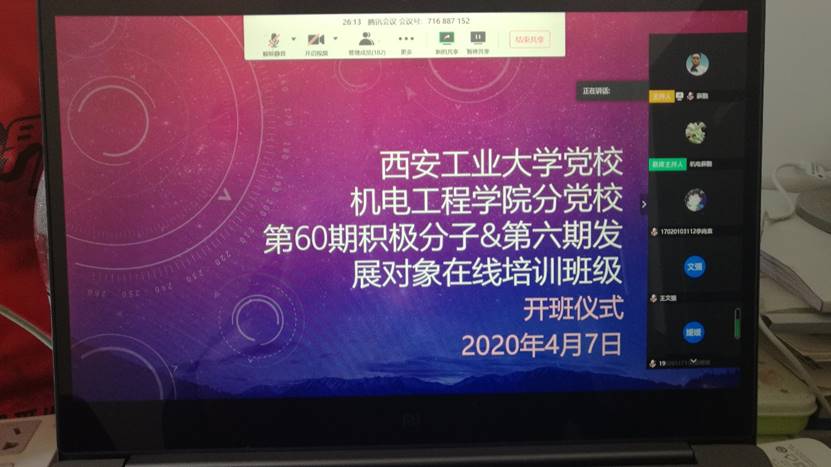四月七日中午,best365官网分党校依照公司党校要求,利用腾讯会议系统举行了2020上半年best365官网入党积极分子、发展对象培训班网络开班仪式,员工党总支副书记薛鹏主持。