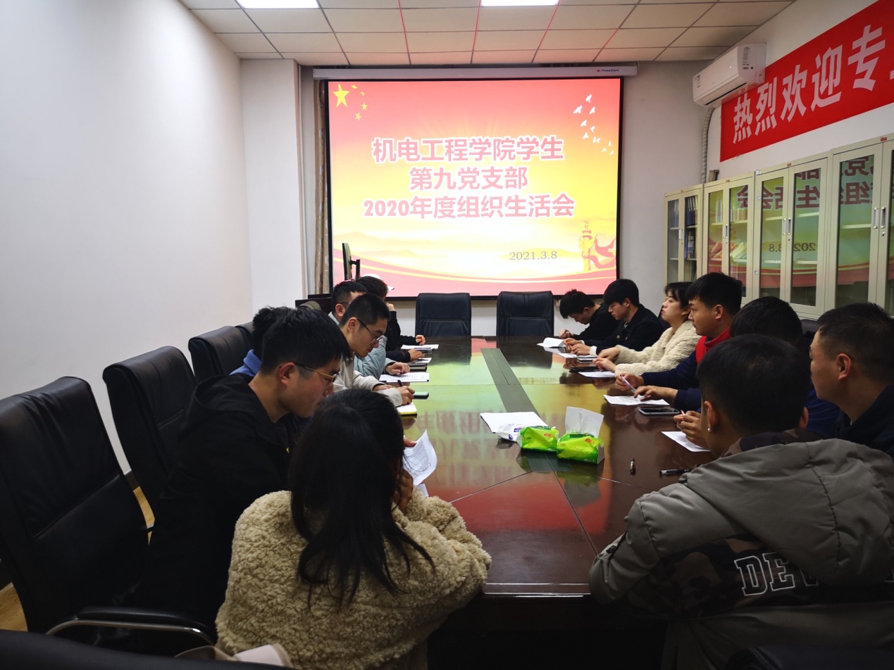 为深入学习贯彻习近平新时代中国特色社会主义思想和党的十九届五中全会精神,做好基层党组织组织生活会和开展民主评议党员,根据公司《2020年度基层党组织组织生活会和开展民主评议党员几个问题的通知》,3月8日晚,员工第九党支部于工二308会议室召开2020年度组织生活会,开展了民主评议。会议由支部书记刘昊雨主持,支部全体党员参加。