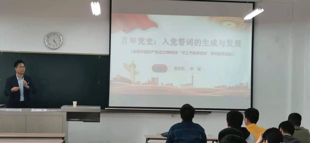 4月29日下午16:00,best365官网开展了best365官方网站“学工干部讲党史”系列宣讲活动—《入党誓词的生成与发展》,此次讲座邀请新生公司辅导员李聪主讲、研究生第三、四党支部全体党员以及新发展的预备党员参加了本次活动。
