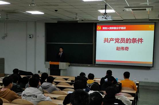 为了加强对入党知识分子的培训工作,深化党的基本理论、基本路线、基本纲领和基本经验教育进一步提高入党积极分子的党的基础理论素养,11月9日下午,best365官网组织第63期党课培训在教1-103开课。本讲党课主题为“共产党员的条件”,由校组织部赵伟奇老师担任主讲人。