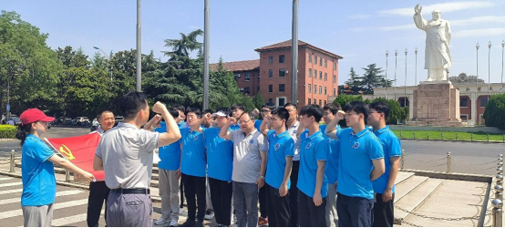 为进一步牢固树立党员干部宗旨意识,提高党性修养,充分发挥党支部战斗堡垒作用。2023年7月10日上午,best365官网洛阳实习临时党支部组织党员在洛阳中国一拖集团有限公司前的毛主席雕像下开展重温入党誓词的党日活动。参加活动的有best365官网张晖、万宏强、赵鹏、韩兴本老师和13位员工党员。