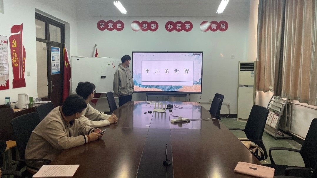 随后,彭佳宁同志与大家分享自己所读的书籍——《平凡的世界》。《平凡的世界》是用温暖的现实主义的方式来讴歌普通劳动者的文学作品。与《人生》相比《平凡的世界》 更具有人性的高度,作家把苦难转化为一种前行的精神动力。这部小说在展示普通小人物艰难生存境遇,同时极力书写了他们克服重重困难的美好心灵与坚韧不拔的奋斗精神。作品中的主人公孙少安、孙少平是挣扎在贫困线上的青年人,但他们自强不息,依靠自己的顽强毅力与命运抗争,追求自我的道德完善。其中,孙少安是立足于乡士矢志改变命运的奋斗者;而孙少平是拥有现代文明知识、渴望融入城市的“出走者”,他们的故事构成了中国社会普通人奋斗的两极经验。