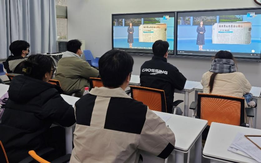 随后,大家一起观看了国家行政公司社会和生态文明教研部教授王茹,讲述的《为什么“绿水青山就是金山银山”》视频,她带领我们从我国生态文明建设以来取得的成就讲起,以理服人,让我们深刻理解生态文明建设的伟大意义。她还指出,“绿水青山就是金山银山”不是要用“叶子”去换“票子”,而是要破除发展与保护的二元对立。这让我们真正感受到生态建设的合理性。