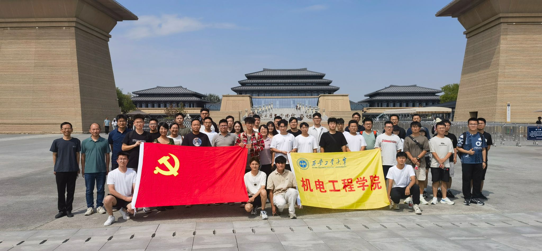 随着夕阳的余晖洒满博物馆的长廊,本次的参观学习活动也接近了尾声。师生们在博物馆门前留下了合影。本次活动,不仅提升了师生对于秦汉历史文化的了解,加强了师生对于中国传统文化的自信,增强了师生历史责任感和使命感;而且有效增进了党员教师与员工的交流与互动,帮助同学们在生活和学习中获得更多的自信心、上进心及归属感。