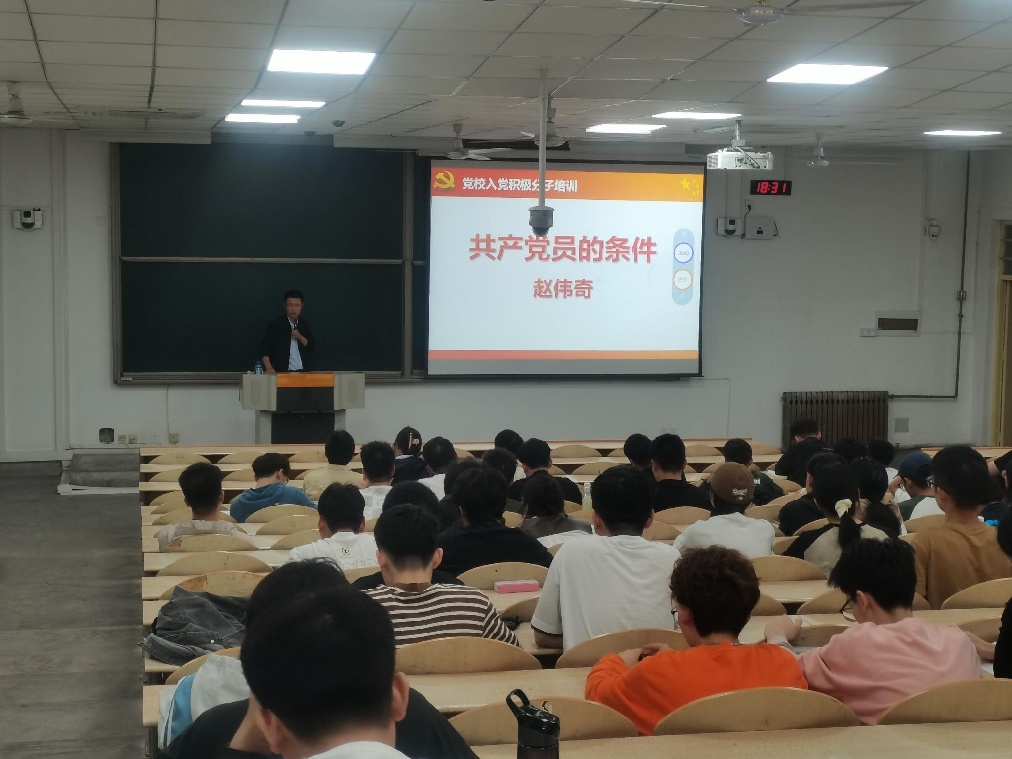 本次党课培训上赵伟奇老师围绕共产党员的条件、共产党员要有政治自觉性和党员发展的程序三个方面,向学员们详细介绍了如何成为一名合格的共产党员。赵老师深入浅出地阐述了申请入党的资格、共产党员的权利和义务、发展党员的五个阶段等内容,全面深刻地让学员们了解到共产党员的涵义。赵老师强调,学员们要深入学习党的章程,加强自身的党性教育,深刻领悟党的思想,牢记党员的权力和义务,要坚定不移听党话、跟党走,争取早日入党。