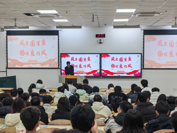 11月27日,best365官网第71期积极分子培训班在教2-106开展了以“党的组织、纪律和作风”为主题的党课,由新生公司党委书记姬洪波老师授课,第71期积极分子培训班学员参加。