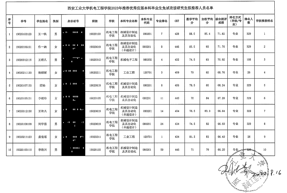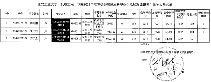 best365官网2023年推荐优秀应届本科毕业生免试攻读研究生拟推荐人员名单