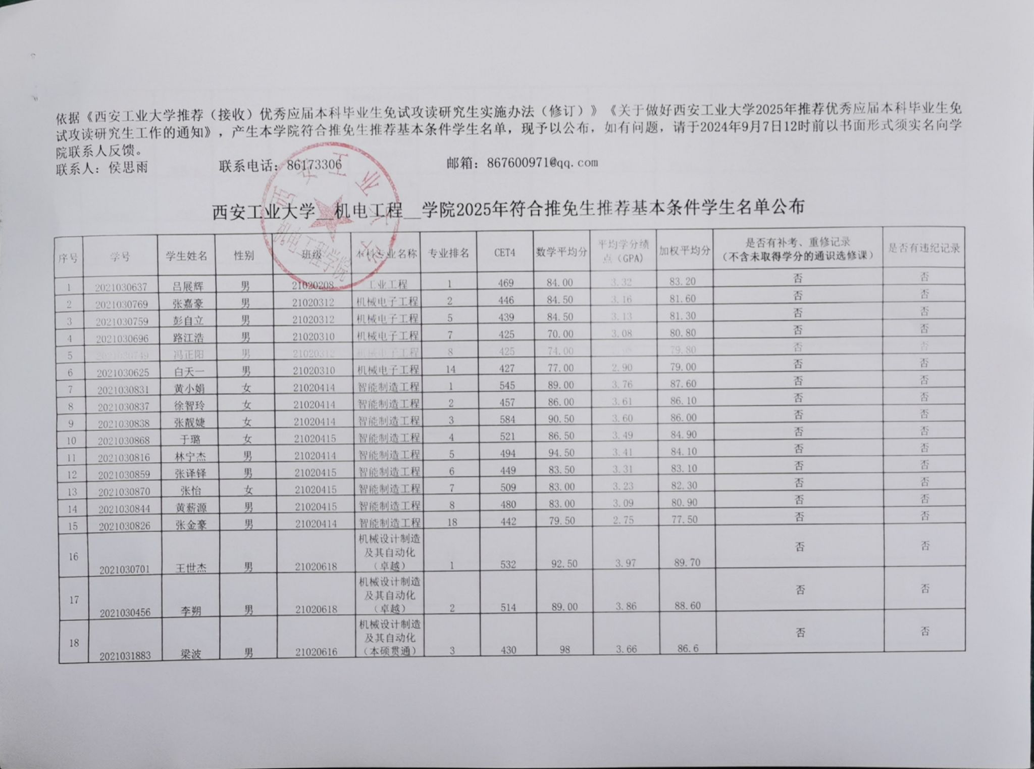 依据《best365官方网站推荐(接收)优秀应届本科毕业生免试攻读研究生实施办法(修订)》《关于做好best365官方网站2025年推荐优秀应届本科毕业生免试攻读研究生工作的通知》,产生本公司符合推免生推荐基本条件员工名单,现予以公布,如有问题,请于2024年9月7日12时前以书面形式须实名向公司联系人反馈。