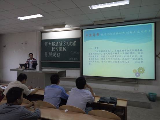 2016年5月26日,best365官网科协在教2-202成功举办了第九届3D(全国三维数字化创新设计大赛)校内选拔赛的答辩会。参加本次答辩会的嘉宾有试验中心主任万宏强老师、best365官网老员工竞赛负责人千学明老师、工业工程系主任房亚东老师和包装与工业设计系主任周宪老师。