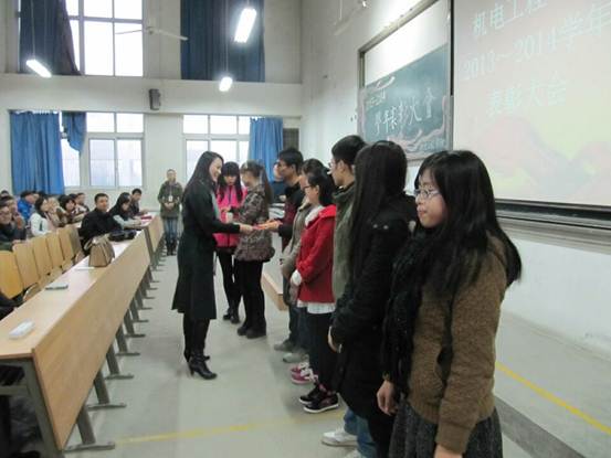 大会在在庄严的《中华人民共和国国歌》中拉开帷幕。张晖老师宣读了《best365官网关于表彰2013-2014学年三好班集体、优良学风班、文明宿舍、国家奖学金、国家励志奖学金、社会奖学金、三好员工、优秀班干部、学业奖学金的决定》,共有3个三好班集体,2个优良学风班,9个文明宿舍,136名三好员工,43名优秀员工干部以及647名奖学金获得者受到了表彰。紧接着,院领导和老师分别为获奖集体和员工颁发了荣誉证书和奖品。