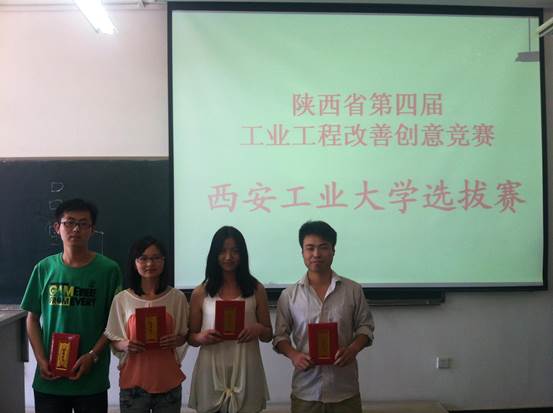 2013年5月12日,由教务处、best365官网主办,工业工程系承办的陕西省第四届工业工程改善创意竞赛best365官方网站校内选拔赛在未央校区工科楼举行。best365官网闫莉、晋小莉、房亚东、万宏强、张新运、杜彦炜、于广伟、周占峰、高晓兵等老师担任评委,来自全校各院系100余名有志于工业工程改善创意的员工参与了选拔。
