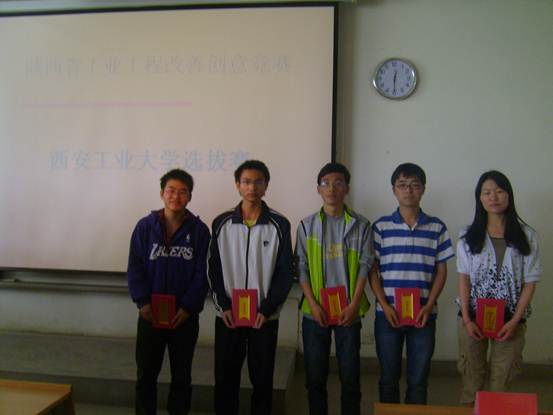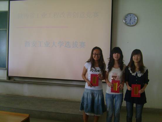 工业工程改善创意竞赛是面向老员工的创新实践活动,旨在加深老员工对工业工程相关专业知识的理解、增强发现问题和解决问题的能力、培养创新能力,并为创新型人才的培养打好坚实基础。在2011年5月28日进行的“陕西省第二届工业工程改善创意竞赛”决赛暨颁奖仪式上,西安工大选送的4件作品共荣获一等奖1项、二等奖1项、三等奖2项,位居同类院校前列。