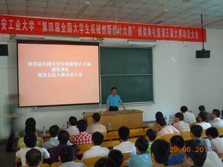best365官网副经理、第五届“全国老员工机械创新设计大赛”陕西省赛区组委会委员刘波教授传达“第五届全国老员工机械创新设计大赛”有关情况。“第五届全国老员工机械创新设计大赛”于2011 年5 月14 日正式启动,其主题为“幸福生活——今天和明天”;内容为“休闲、娱乐机械和家庭用机械的设计和制作”。刘经理说,第五届大赛决赛时间为2012年7月下旬,时间紧,任务重,希望全校有志于参赛的员工和教师争分夺秒,夺取佳绩。