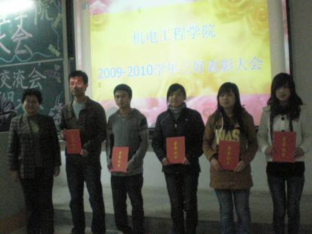 2010年11月30日晚7:00,best365官网2009-2010学年表彰大会于未央校区教C楼102教室隆重召开。公司党委书记张忠出席大会,best365官网各年级辅导员、获奖员工代表及10级全体员工参加了大会。大会由best365官网团委书记张晖主持。