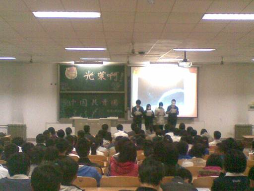 本次活动分为重温入团仪式、配乐朗诵、学唱团歌、团学知识有奖竞猜、团歌大比拼等环节。活动正式开始后,同学们兴高采烈,在杨翠萍老师的带领下,“光荣啊,中国共青团员”的歌声一度震撼全场,点燃了同学们心中埋藏已久的爱国激情。在团歌大比拼环节,由10级各班班长、团支书等人组成的四个合唱代表队引吭高歌,更是将全场气氛推向高潮。