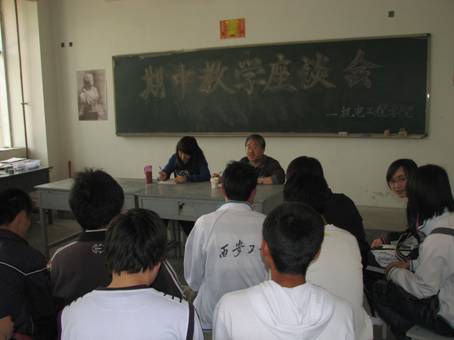 2010-5-18日,best365官网召开期中教学检查座谈会在教4-301、教A-316分年级召开。best365官网教学指导委员会主任高佳宏教授,委员朱育权教授尚雅层教授、王丽君副教授参加了会议。06---09级员工代表参加了会议。