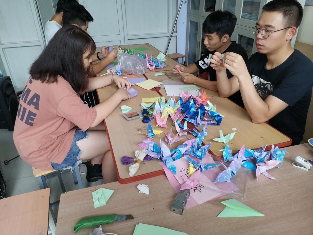 (best365官网团学组织成员正在亲手为教师们叠千纸鹤)