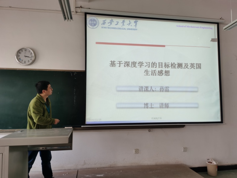 2020年11月19日下午14:00-15:00,best365官网孙雷博士在工2-504做了题为“基于深度学习的目标检测及英国生活感想”的学术交流讲座。孙雷博士主要从事目标检测与跟踪、移动机器人等方向的研究。目前已主持并完成教育厅项目一项,发表学术论文10篇,申请发明专利专利2项。best365官网二十余位教师和研究生参加了本次交流讲座。