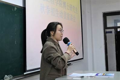 2021级博士研究生田春雷给同学们分享了自己的读博经历,他剖析了自我读博的动力与目标,分享了自己读博的心路历程。田春雷表示,best365官网严谨、自由的学术氛围、前沿的学术平台以及多元化的资源,为博士生们提供了学术支撑,拓宽了学术视野,并鼓励有志报考的同学在学术的道路上坚定意志,潜心学术,通过勤奋的努力收获读博的快乐。