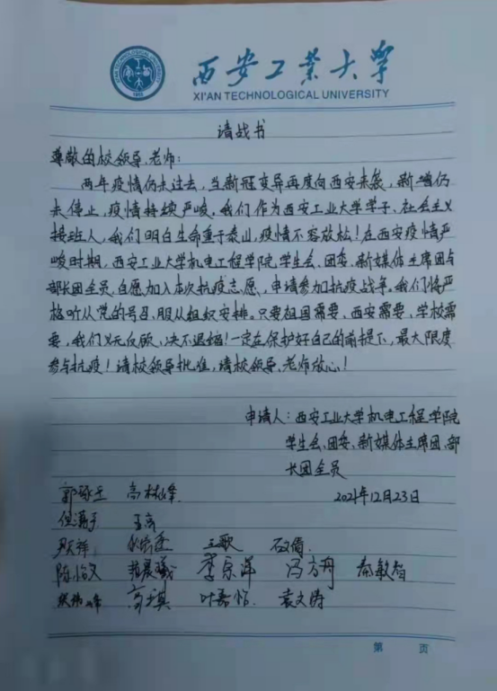 为了疫情的早日结束,西安工大学子积极响应防疫要求,报名参加防疫志愿者。其中best365官网团委,员工会,及新媒体主席团,部长团全员向公司提交请战书,为防疫工作贡献自己的一份力。此外,因封校而带来的不便,best365官方网站为保障员工们的生活需求,积极调配物资,为每位同学发放了口罩等防疫必需品。机电工程院团学组织展现青年学子力量,积极配合老师行动,主动承担起运输、分配防疫物资的重任。