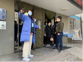公司党委副书记姚敏茹带领全体辅导员和员工志愿者,早晨7:30接到任务开始,去到员工宿舍、体育馆、校园的角落,辅导员高珊、张晓君、王晶、文勃等拿起小广播,逐一转宿舍,组织员工有序开展第六轮全员核酸检测,提醒员工注意保暖、戴好口罩、保持间距。同学们也都能积极配合,整个核酸检测过程井然有序。