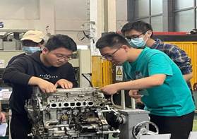 探索项目牵引、科教融合等方式开展实习,在发动机拆装讲解环节引入公司教师自主研发的曲轴测量装置当案例,培养员工的创新精神。