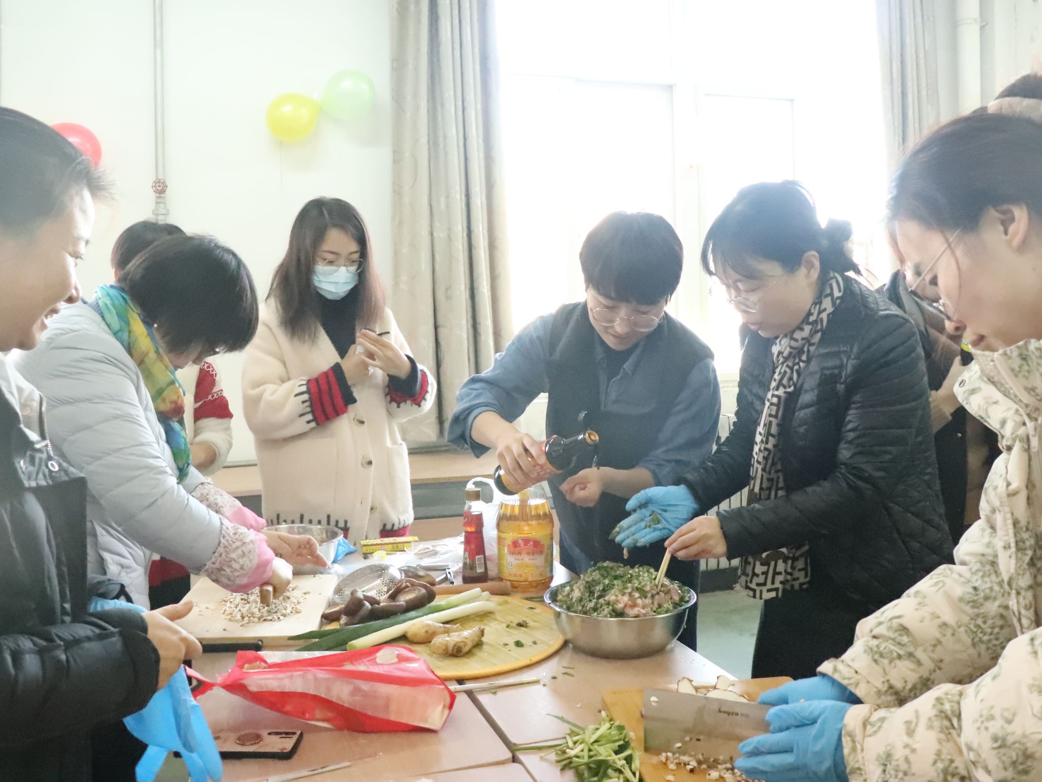 活动现场热火朝天,平日在三尺讲台上授业解惑的老师们,此刻卷起衣袖,分工协作:调馅、和面、切剂子、擀皮,个个动作娴熟,忙得不亦乐乎。不一会儿的功夫,面前的盘子里就摆满了不同形状的饺子。缺乏厨房技能的员工,现场学习包饺子的技巧,从摘菜、切菜、包饺子到煮饺子,全程沉浸式体验了中国传统美食饺子的制作过程。在大家的欢声笑语中,各式各样的创意饺子横空出世,有韭菜大肉馅,也有红枣馅,饺子形状有的像包子,有的像爱心。师生其乐融融,谈起了自己家乡的冬至习俗和童年的记忆,温馨的氛围为寒冷的冬日增添了浓浓的暖意。