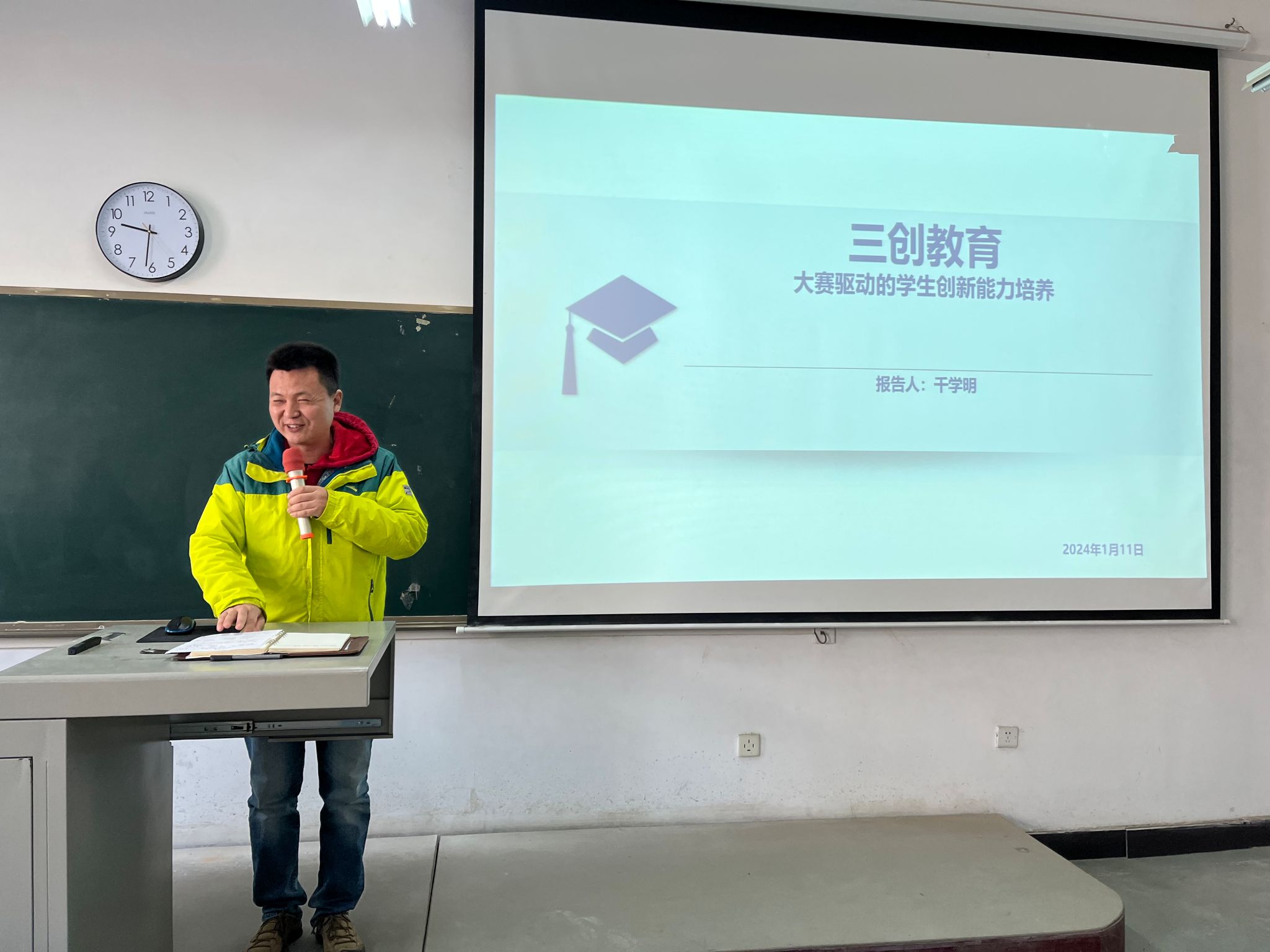 培训会上,千学明介绍了创新、创意、创业大赛的区别,同时从选题设计、团队建设、科研方法、技术操作、成果展示、参赛经验与能力培养与提升等方面为研究生导师系统地展开综合培训。最后,千学明结合自身经验,获奖的竞赛案例做了仔细地讲解,使导师深入体会参赛的意义与价值,为导师们提供了丰富的理论知识和实践经验。