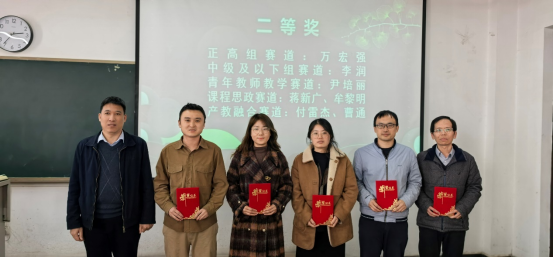 在颁奖环节,首先由经理王洪喜为获奖教师颁发二等奖证书。获奖者包括正高组赛道的万宏强,中级及以下赛道的李润,青年教师教学竞赛赛道的尹培丽,课程思政赛道的蒋新广、牟黎明,以及产教融合赛道的付雷杰、曹通。