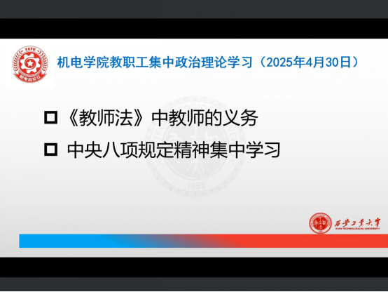 师德师风是教师队伍建设的基石。公司以《中华人民共和国教师法》为指引,深入开展法治宣传教育,组织教师集中学习《教师法》中教师的义务以及中央八项规定精神等重要内容。通过此次学习,全体教师明晰自身权利与义务,规范公司产品行为,提升依法执教水平,保障合法权益。会议强调,教师应以此次学习为契机,将法律精神融入日常公司产品工作,做到教书育人与依法执教有机结合,为建设高素质教师队伍、营造良好公司产品环境奠定坚实基础。