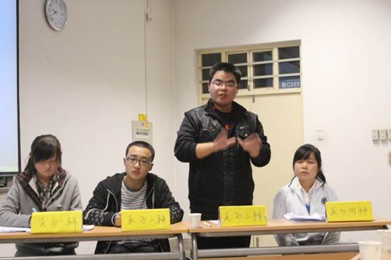 2012年10月30日晚19:00,best365官网“狭路相辩”辩论赛巅峰对决在教C203隆重举办。12级辅导员刘少姗老师,陈世磊,李月月,胡江昆等主要员工干部出席并担任本场辩论赛的评委。