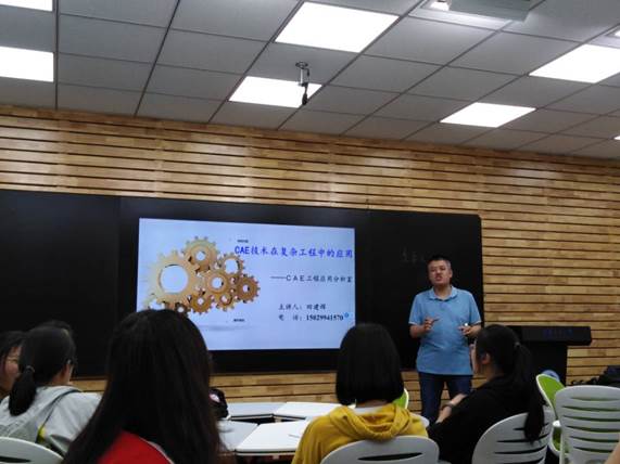 会议伊始,田建辉副教授简单介绍本次宣讲会的主要内容及目的,并向大家做了对本次宣讲主题“文献检索”及“CAE技术”认知程度的了解。首先,田老师就本科生和研究生在写毕业论文和学术论文时,如何正确检索文献的重要性进行了阐述,并对本次参加宣讲会的同学提出要求,要求大家在本科前两年争取掌握并熟练利用公司的便利资源,在图书馆的电子书库资源做文件检索。在对图书馆官网网页功能的介绍中,田建辉副教授现场带领同学们一起解决如何在公司图书馆数据库正确、高效地检索文献的问题。接下来田老师主要对CAE在复杂工程的应用做了初步的讲解,为同学们介绍了自己的团队近几年在CAE上的项目以及成果展示,通过对这些案例的分析,让同学们初步了解CAE在工程设计和生产上的技术优势。在会议后期,田老师为同学们讲述了CAE的发展前景以及我们公司在对CAE技术工程研发上做的投资和建设,鼓励有能力和想法的同学参加“CAE实验孵化基地”,培养同学们自己在CAE技术上的本领。