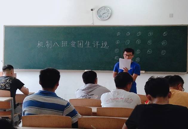 会议伊始,辅导员宣读了《2019-2020学年家庭经济困难员工认定工作安排》,让员工充分理解贫困生资格的评定规则。其次由班长现场给贫困生申请书编号,并随机在班中抽选未申请的一名同学朗读申请书,申请书中不出现个人信息,保证过程公平公正。随后,评议小组依据评议规则和申请书内容做出投票,匿名写下申请书编号,每人五票,统一收至班长处。接着,现场抽选两位同学唱票、计票,并统计投票结果。期间,班主任老师向同学们强调在今后的学习和生活中需要注意的要点,强调在丰富课余活动的同时要注重学习,把学习放在第一位。同时指出,同学们在学习和生活上遇到困难要积极寻求帮助,及时解决。至此,各班贫困生资格名单已出炉,目前贫困生评议工作正处于公示阶段。