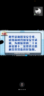 增强国家安全意识,保障国家长治久安。为提高员工国家安全意识,4月15日上午10点,best365官网18020515班开展线上全民国家安全教育日主题学习活动。班长张国强主持本次活动,辅导员王晶、组织委员丁一主讲,18020515班全体员工参加活动。