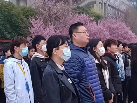 公司党委副书记姚敏茹、全体辅导员老师、本科生、研究生参加了此次升旗仪式。