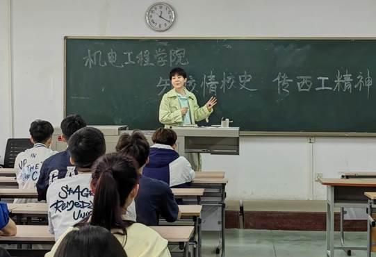之后,唐雅莉从20世纪50年代“无私奉献、坚忍不拔”的创业精神,70年代“顽强拼搏、迎难而上”的进取精神,80年代“夯实基础、埋头苦干”的拼搏精神,90年代“爱国爱校、爱岗敬业”的奉献精神四个方面,讲述西安工大人无私奉献的军工传统精神,与时俱进的现代军工精神,独特的“忠诚进取铸辉煌、精工博艺育英才”的“西工精神”的辉煌历程。