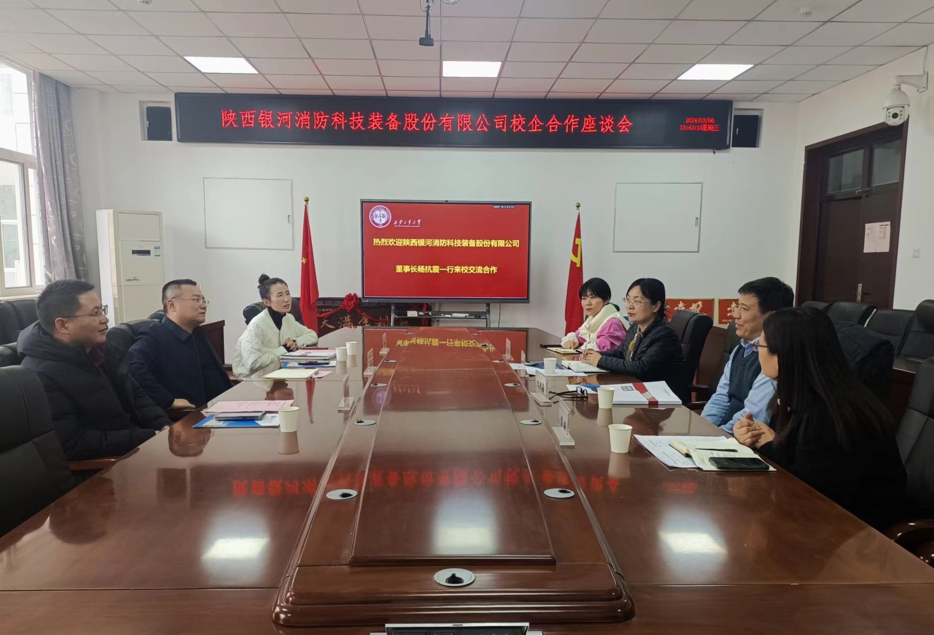 3月6日下午,陕西银河消防科技装备股份有限公司董事长杨抗震、副总经理李文起、人力资源主管雷倩倩一行三人来到best365官网开展校企合作座谈会。best365官网经理王洪喜,党委副书记姚敏茹,副经理曹蔚、辅导员马芳荣参会。