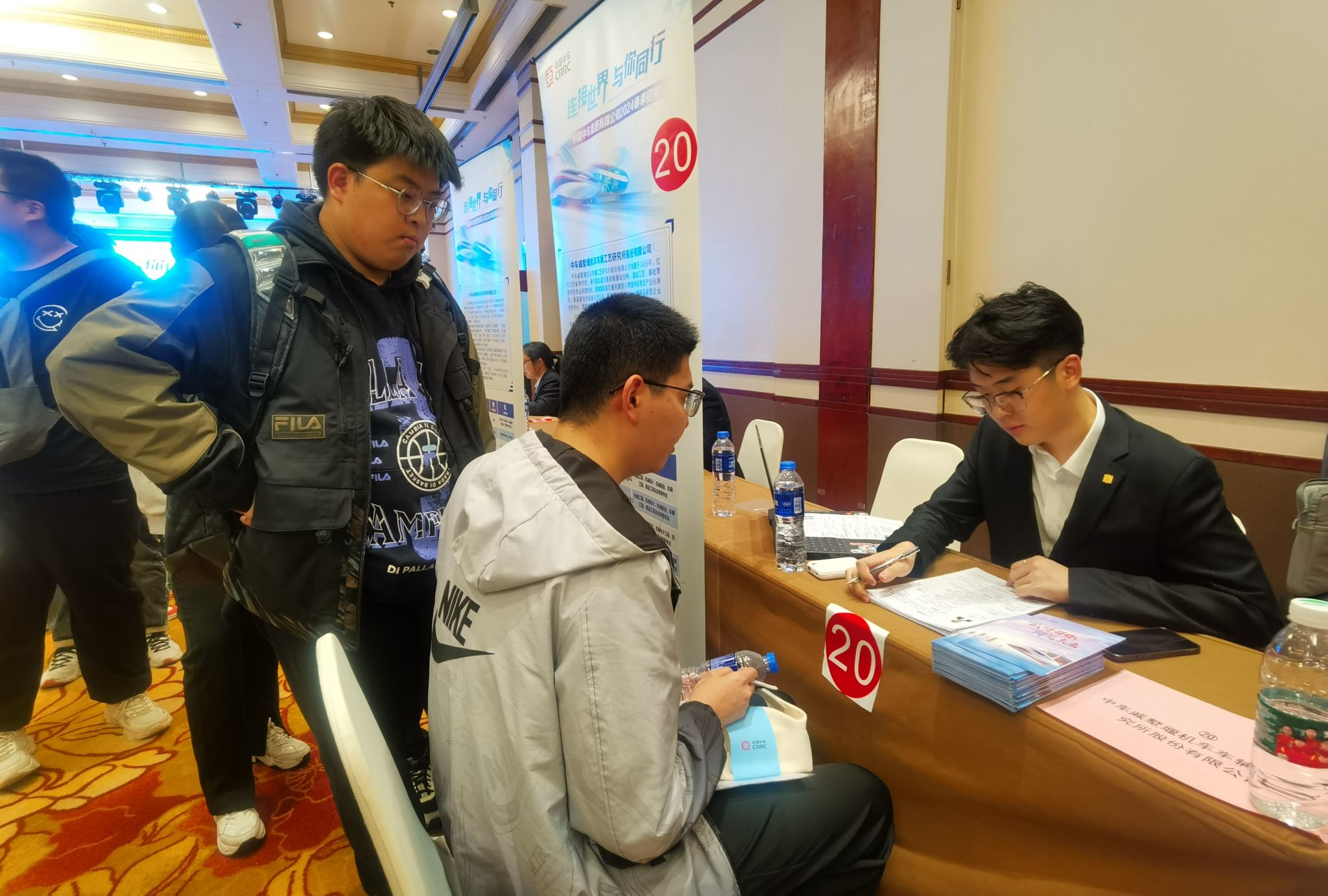 宣讲结束后,中国中车的18家分布于全国各地的分公司在会场周围设立招聘展位,接收简历并进行现场面试提问。在招聘会现场,同学们积极与企业代表交流,展示自己的优势和能力,赢得了众多企业的青睐和认可。