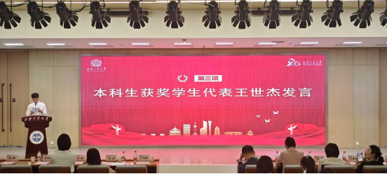 研究生刘一聪以“青春因磨砺而精彩,人生因努力而充实”寄语在场同学,激励大家不负青春、不惧挑战。