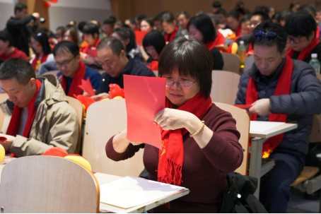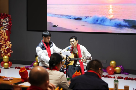 张耿老师的《新春剪韵》剪纸互动环节,不仅看到了教师们的心灵也再次体现了他们的手巧;智工系老师表演的舞蹈《撸起袖子加油干》在喜庆热闹的氛围中突显了教师们的精神抖擞、神采飞扬;而实验中心老师表演的节目《祝福》,将实验安全教育融入诙谐表演当中,幽默且创意满满,引得台下掌声雷动。最后,全体教工共唱《难忘今宵》,激昂的旋律回荡在会场,凝聚起新一年砥砺前行的磅礴力量。