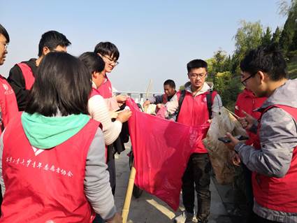 上午9点30分,志愿者们在图书馆门口集结完毕。在短暂的车马劳顿后,抵达本次志愿活动的地点-灞河。本次的志愿活动主要为捡垃圾,志愿者们沿灞河河岸寻找并拾取每一个垃圾。有的餐盒被随意扔置在台阶上,有的垃圾袋上粘满了油污,志愿者们伸出双手尽责将垃圾袋捡起。草丛里、台阶上、道路旁,每一处都有志愿者们寻找垃圾的身影。大到塑料袋,小到一颗烟蒂,没有垃圾可以躲过志愿者们的“火眼金睛”。路过的环卫工人表达了对志愿者们工作的肯定和赞扬,亲切的为志愿者们提供了垃圾袋,并一再告诫志愿者们捡垃圾时要小心,之后更是让志愿者们亲身体验了打捞河里垃圾,利用各种工具,顺利完成任务。告别环卫工人后,志愿者们合影留念,于十一点踏上归途。