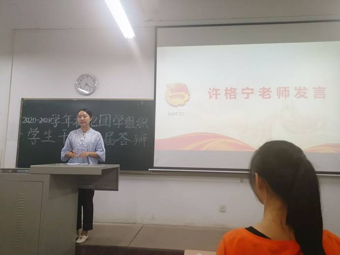 在各位参选人员结束答辩后,许格宁老师对本次大会进行总结,首先提出新任主席、副主席应尽快适应自己的职位和工作,希望各位主席、副主席尽快磨合,共同为best365官网的建设尽出自己的力量。之后许格宁老师对看到这么多自愿留干的干事表达喜悦之情,也为即将上任的各位干部门加油打气,同时也告诫各位参选人员在工作的时候也不能扔下学习,应平衡工作和学习之间的关系。至此,本次大会圆满结束。