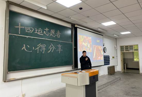 首先,吕凯同学向大家介绍了十四运期间的经历,收获和感想,表示这是一次很充实且意义非凡的经历。同时,吕凯同学还介绍了十四运期间的相关工作,例如替运动员及其陪同人员保管身份证、参赛证等个人证件,登记与管控工作以及兴奋剂检查站的日常清理工作等。吕凯同学感慨道在这次经历中不仅体会到了志愿服务的意义,更锻炼到自己的能力。吕凯同学只是公司众多志愿者的其中一位,在十四运的背后还有很多默默奉献的志愿者,他们都为了十四届全运会的顺利落幕贡献出了自己力所能及的一份力量。