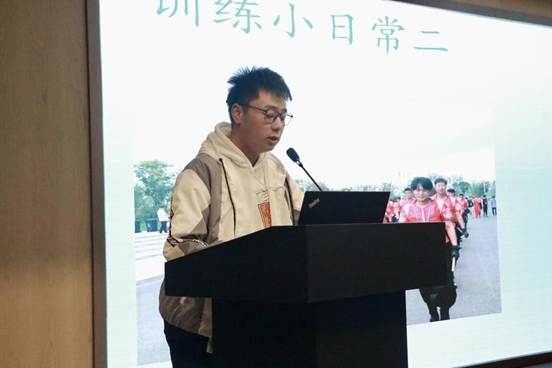 不仅如此,他还表明在十四运排练期间群演们也经历了种种考验。首先,在排练的开始阶段,每一个人都充满了斗志。但随着时间的推进,群演们的任务不断加重,心理状态开始进入疲惫期。其次,在奥体排练时,群演们常常睡地库,吃面包,参加繁重的训练任务。尽管群演们常常是迎着夕阳出发,伴着朝阳回校,也常常是冒着暴雨,顶着酷暑在奥体排练,但他们依旧满怀热情地投入到每一天的训练当中。最后,群演们用自己的辛苦和汗水展现出了一幅精彩绝伦的迎宾鼓阵,为十四届全运会交出一份满意的答卷。