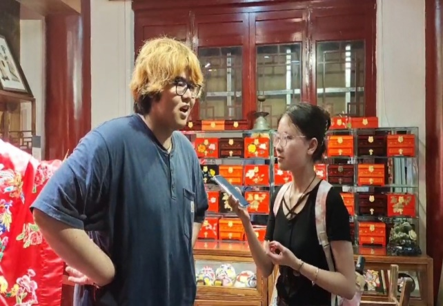 7月15日,队员们来到永兴坊的秦腔和皮影戏排练现场,近距离观摩了秦腔戏曲演员的专业呈现和服饰妆造,以及用于表演的剧目服装、道具和乐器等,了解了秦腔演出的精心准备和组织。